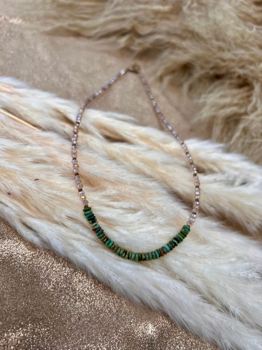 Austrian Light Golden Crystal & Kingman Turquoise Necklace