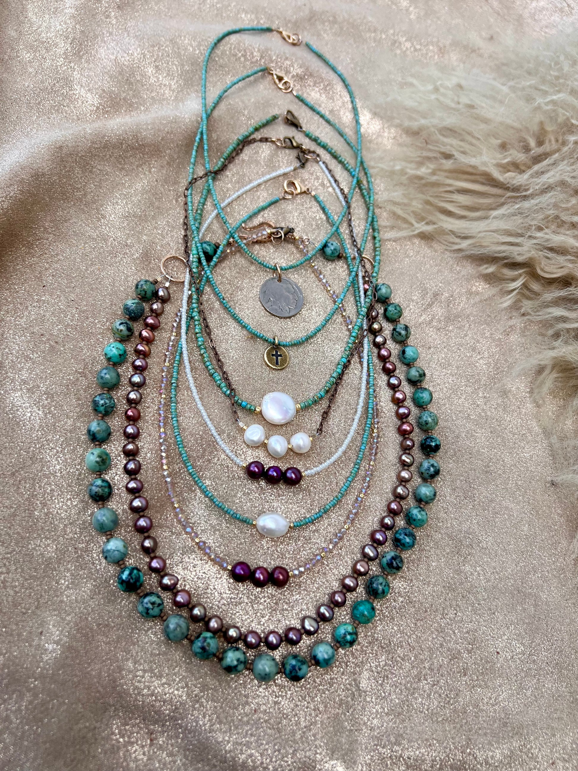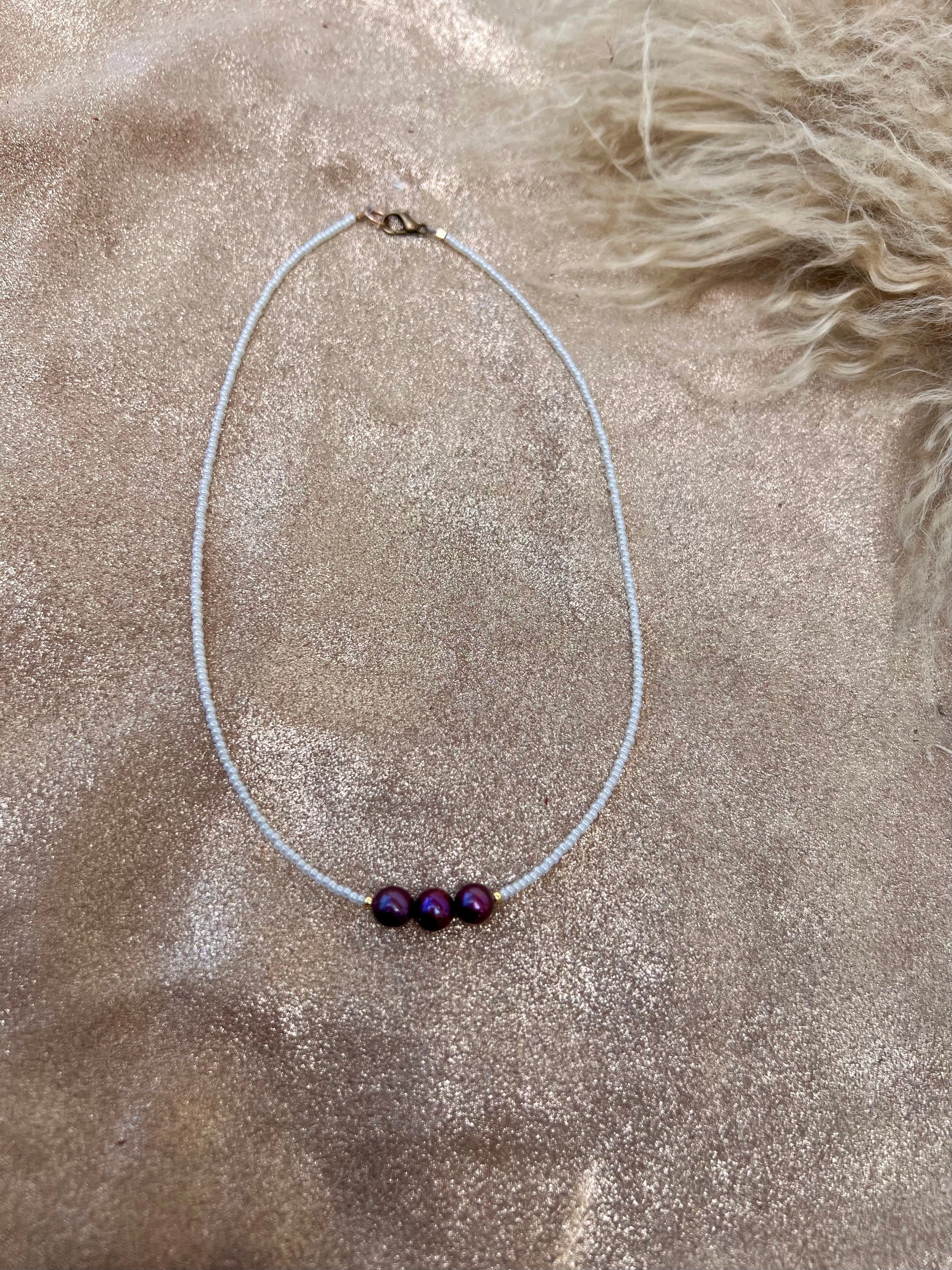 These pearls are a beautiful purple/maroon color paired with beautiful white seed beads.