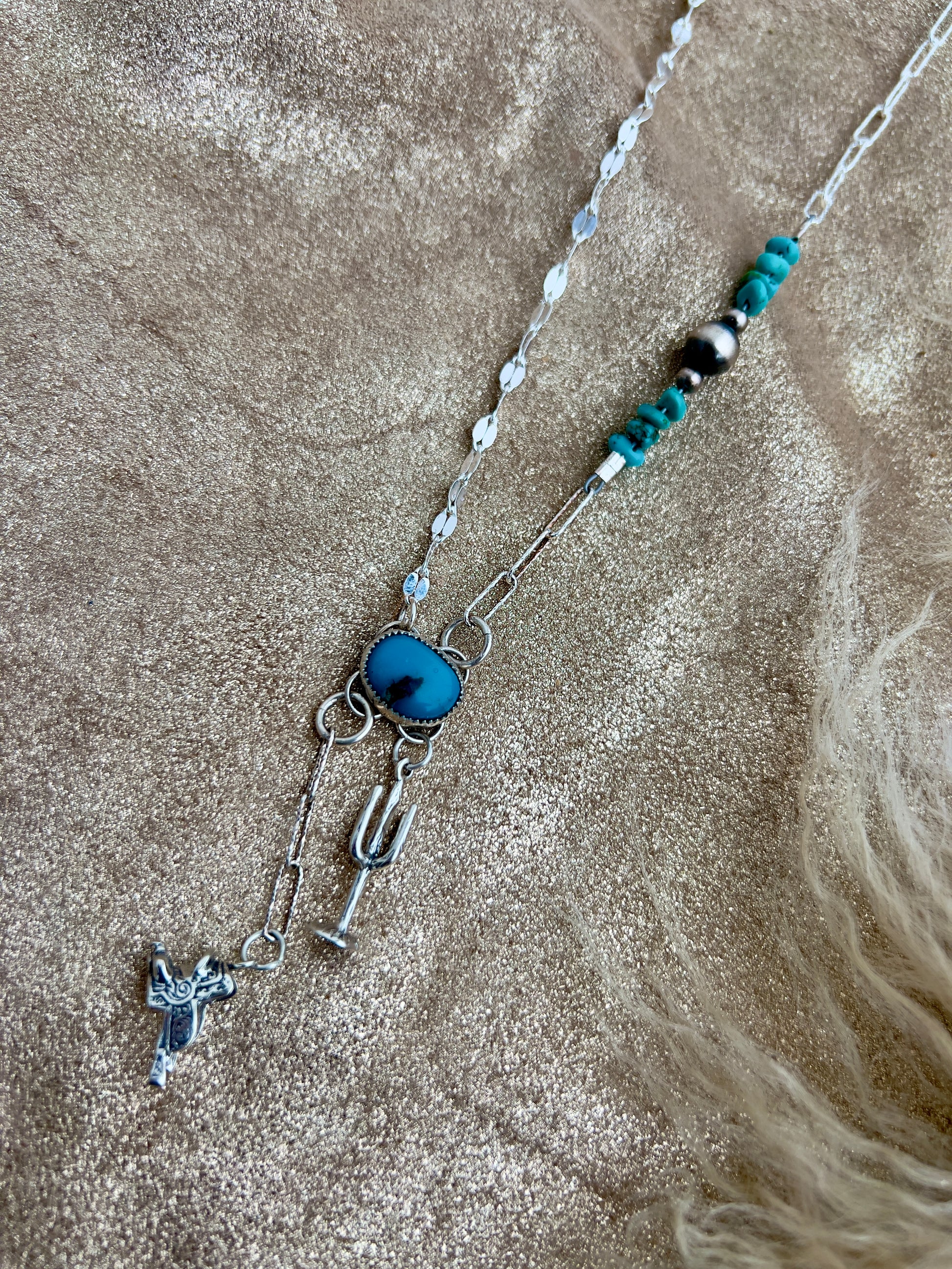 Genuine Sterling Silver and Turquoise. Featuring a saddle and cactus charm.